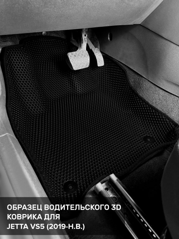 Автомобильные 3д коврики для Jetta VS5 (2019-н.в) в салон авто и багажник сделаны из инновационного полимерного материала EVA, изысканная структура в виде ячеек не дает воде, пыли и снегу разлетаться по салону машины и багажнику. 3д коврики зафиксированы на полу определенными клипсами, соответствующими Jetta VS5 (2019-н.в), и не двигаются в процессе езды.