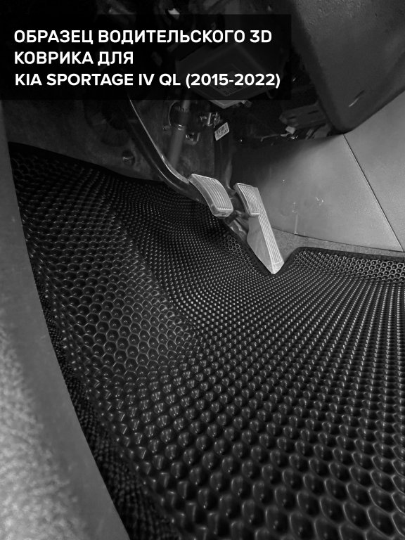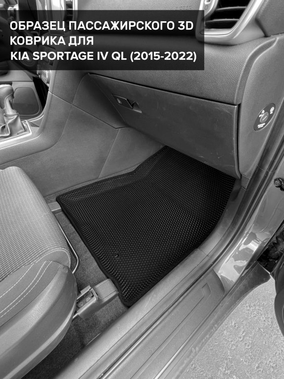 Автомобильные 3д коврики для Kia Sportage IV QL (2015-2022) в салон авто и багажник сделаны из инновационного полимерного материала EVA, изысканная структура в виде ячеек не дает воде, пыли и снегу разлетаться по салону машины и багажнику. 3д коврики зафиксированы на полу определенными клипсами, соответствующими Kia Sportage IV QL (2015-2022), и не двигаются в процессе езды.
